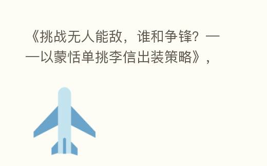 蒙恬与李信的单挑,需要玩家在装备选择、技能运用和团队配合方面做出正确的决策。通过 这篇文章小编将的攻略指南,相信玩家们能够在游戏中掌握以蒙恬单挑李信的关键,获得战胜对手的胜利。