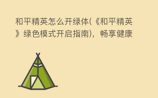和平精英怎么开绿体(《和平精英》绿色模式开启指南),畅享健康竞技之旅